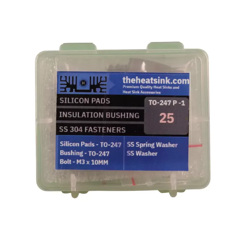 Components such as regulators, transistors, SCRs, diodes, etc., which come in TO-247 package can be mounted on to the heatsink through this kit.